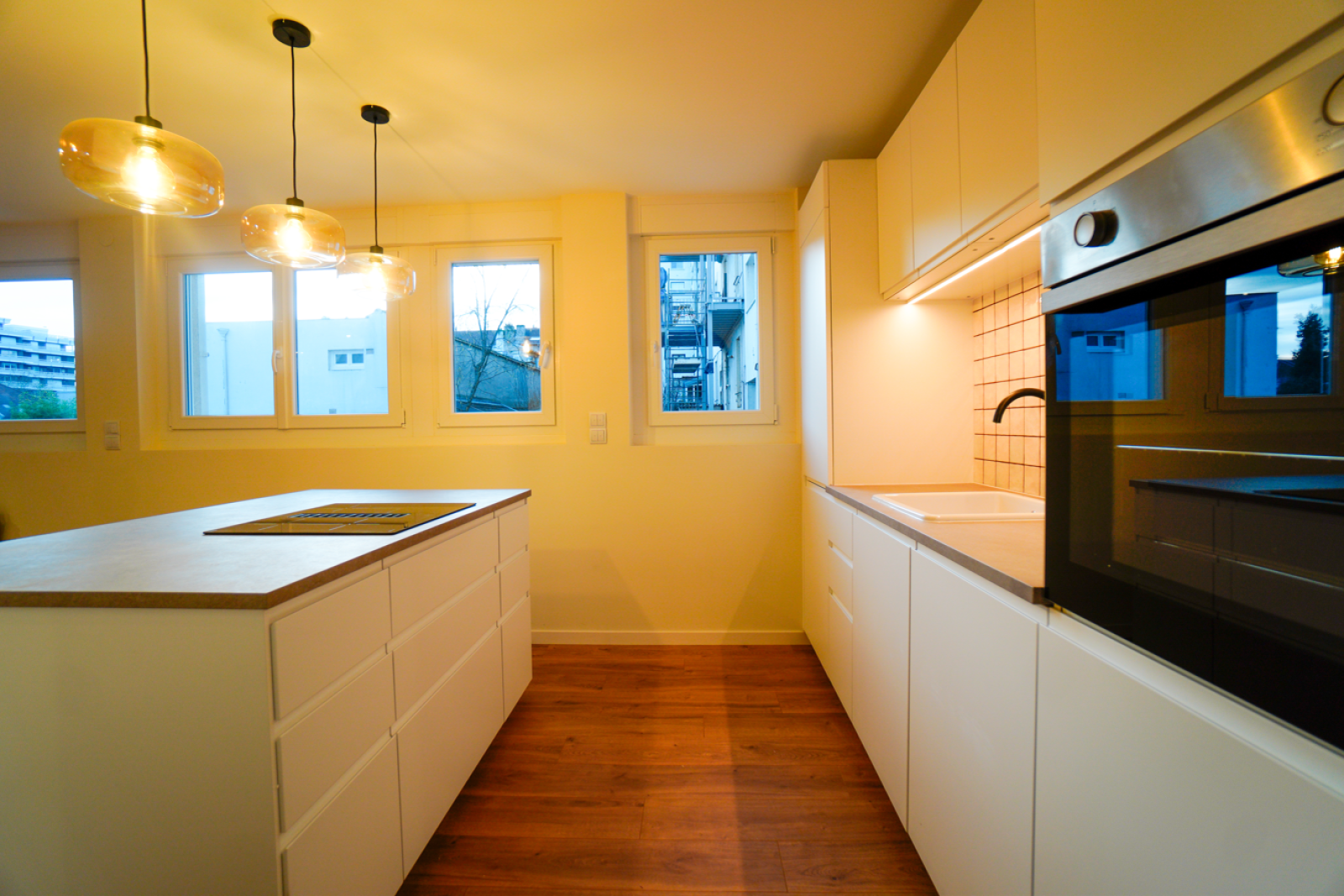 A louer à Nancy, avenue Anatole France, dans une résidence de standing, bel appartement T4 de qualité premium avec garage et parking ; Ce spacieux appartement 4 pièces de 82 m², entièrement refait à neuf, vous offrira une jolie entrée, un agréable séjour lumineux, d'une cuisine américaine ultra moderne meublée équipée, 3 chambres, 2 salles de bains (douches) et WC séparé ; Cet appartement haut de gamme dispose d'une cave et d'un garage fermé + parking extérieur ; Le quartier est très résidentiel et les prestations sont de qualité, rares en location, avec une rénovation intégrale ; Chauffage urbain très économe ; Loyer : 980 € + 150 € de provisions sur charges avec chauffage et eau chaude inclus) ; La gare et l'hyper-centre sont à 5 mn en vélo ; Disponible de suite.